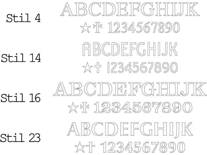 Nästan alla modeller kan varieras i form, granitsort, bearbetning, dekor och text. Man kan efter eget tycke och smak kombinera ihop utseendet på gravstenen. Bronslyktor och övriga tillbehör kan väljas till de flesta modeller. Önskas någon särskild dekor som inte finns i ordinarie sortiment så kan vi skissa fram manuellt, dock kan det tillkomma en kostnad för det.